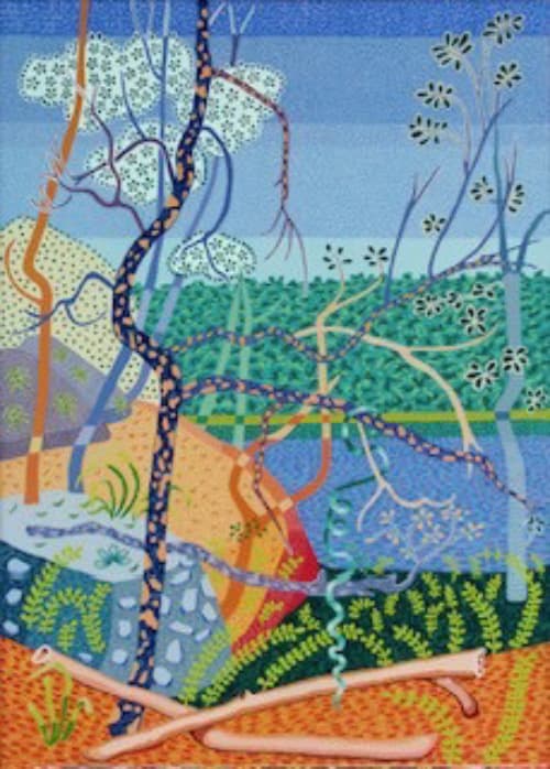 Next, we will create a pattern of textures/marks once again referring to our original image but also using our memory of landscapes, imagination, and skills of invention.